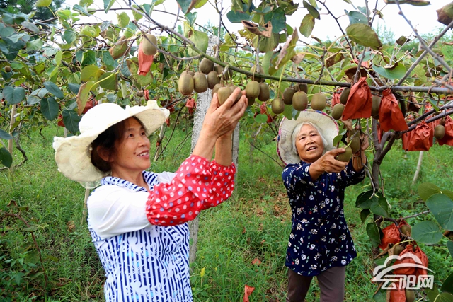 棲霞天惠園種植紅心獼猴桃27公頃,預計今年產(chǎn)量可達2萬公斤,來基地務(wù)工的正忙著采摘紅心獼猴桃,然后由天惠園進行線上線下銷售。