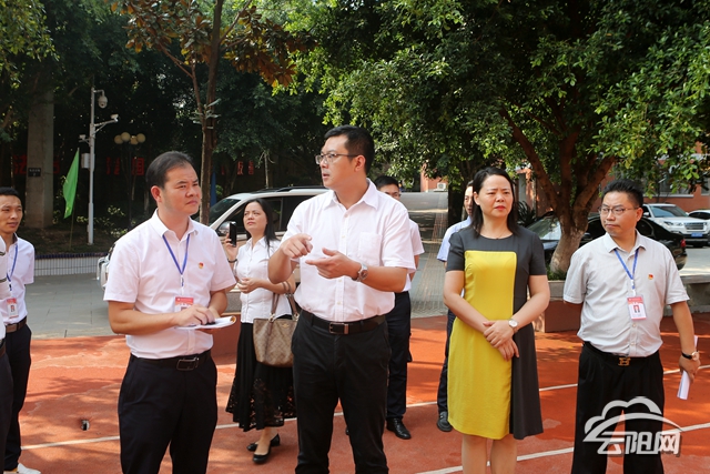 云陽中學(xué)是全縣高中教育教學(xué)“一面旗”。“云陽教育能發(fā)展到今天,離不開老師們的辛勤付出和不懈努力。為了孩子們的美好將來,你們起早貪黑,是優(yōu)秀中的優(yōu)秀!”在云陽中學(xué),覃昌德與老師們親切交流,對默默付出、兢兢業(yè)業(yè)的教育工作者表示衷心感謝。希望云陽中學(xué)要有危機感和憂患意識,在全縣教育“你追我趕”“多點開花”的氛圍中,主動適應(yīng)高考綜合改革,繼續(xù)扛起旗,走得穩(wěn)、跑更遠。希望全縣各級各類學(xué)校要全面落實黨建工作責(zé)任,切實加強青少年思想政治教育,把“四個自信”貫穿教育工作始終;要把立德樹人作為根本,把“德智體美勞”貫穿教育工作始終;要切實抓好校園安保工作,嚴格執(zhí)行教師輪流值班、備課坐班等制度,筑牢校園安全屏障。