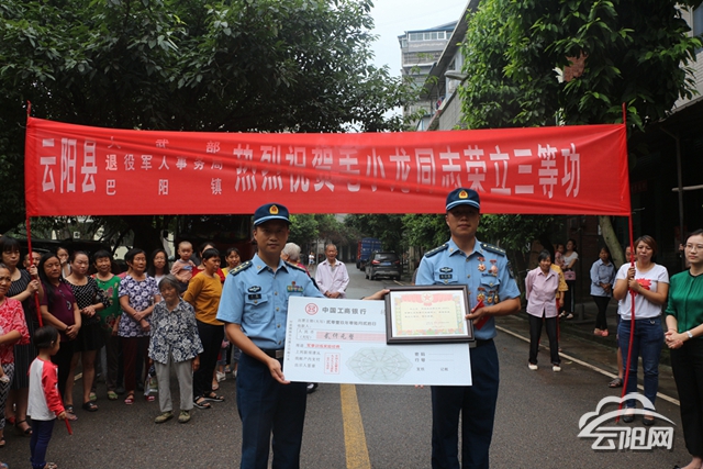 云陽(yáng)網(wǎng)訊(記者 劉雪梅)“今年4月,在空降兵組織的營(yíng)連指揮員比武競(jìng)賽中,毛小龍同志憑借過硬的軍事素質(zhì)和扎實(shí)的理論功底,獲得第二名,榮立三等功……”9月9日,家住巴陽(yáng)鎮(zhèn)的毛小龍家中迎來(lái)了空降兵某部隊(duì)送來(lái)的喜訊及獎(jiǎng)勵(lì)金。