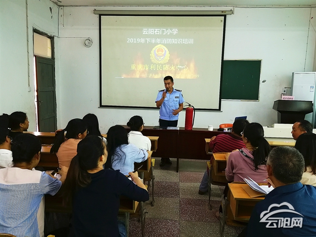 云陽網(wǎng)訊(實習(xí)生 劉超 通訊員 黃舟)9月10日,石門小學(xué)邀請重慶市利民防火宣傳培訓(xùn)中心張瑞太教官為全體教師進(jìn)行了消防安全知識培訓(xùn)。