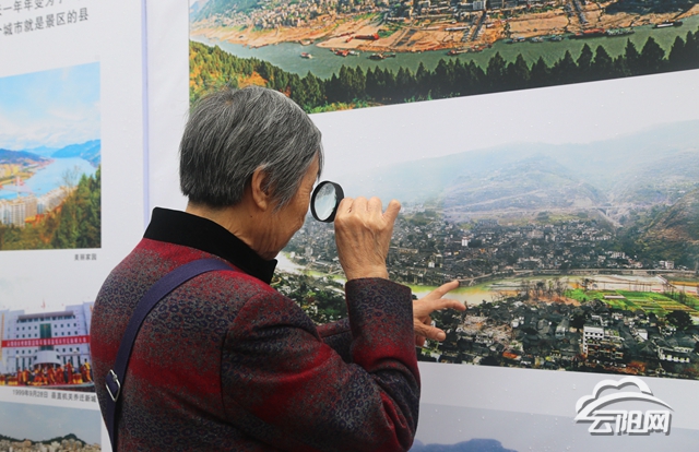 云陽(yáng)網(wǎng)訊(記者 何競(jìng)嘉 鄧?yán)冢拔乙郧暗募揖驮谛睆垬蜻@里,可真是讓人懷念?。 ?月20日,在第十九屆“錦繡云陽(yáng)”文化藝術(shù)展開(kāi)幕式現(xiàn)場(chǎng),80歲的胡婆婆拿著放大鏡邊指著云安鎮(zhèn)全景圖看,一邊跟記者說(shuō)。