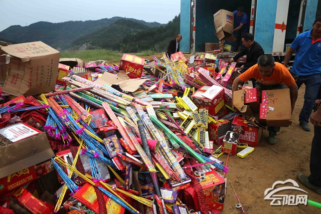 在挖掘機(jī)挖出的3米深坑中,爆破員有序在3枚炮彈、2枚手榴彈及682發(fā)雷管上綁好起爆炸藥,連好起爆電雷管,警戒人員確認(rèn)2公里范圍內(nèi)無(wú)其他人員安全后,三聲哨響,爆破員按下起爆按鈕,爆破現(xiàn)場(chǎng)隨即傳來(lái)轟隆一聲巨響和少量白煙霧,15分鐘后,爆破員進(jìn)入深坑檢查銷毀炸坑殘留碎片,爆破銷毀成功、安全。