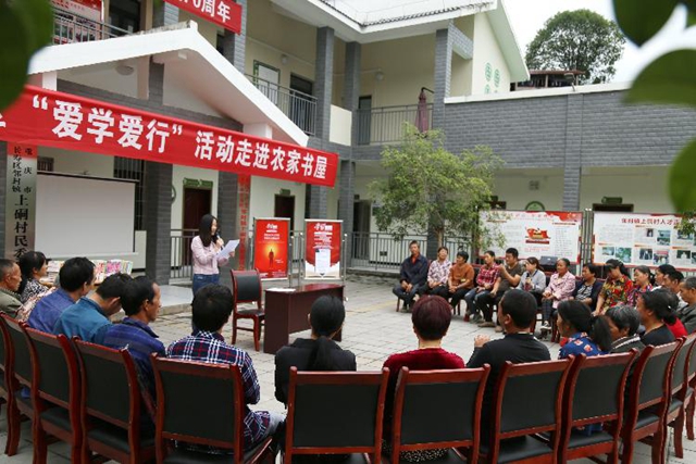 ▲“I學(xué)I行”風(fēng)采展示活動(dòng)走進(jìn)長(zhǎng)壽區(qū)鄰封鎮(zhèn)上硐村農(nóng)家書(shū)屋