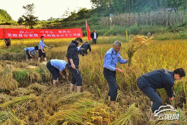 云陽網(wǎng)訊(記者 鄧磊 通訊員 周宇)不忘初心踐行動,牢記使命助脫貧。近日,云陽縣公安局以“迎大慶·送歡樂·聚民心”為主題,組織黨員干部到大陽鎮(zhèn)開展黨群連心活動,幫助農(nóng)戶開展秋收。