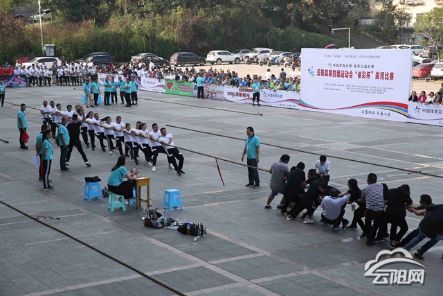 8時30分,隨著一聲哨響,賽場上,參賽隊員們紛紛鉚足了勁,漲紅了臉,勒繩下腰,降低重心,齊心協(xié)力往后拉。緊接著,現(xiàn)場觀眾也變身拉拉隊員,為自己的參賽團隊加油。一瞬間,吶喊聲、加油聲此起彼伏,將比賽一次又一次推向高潮。