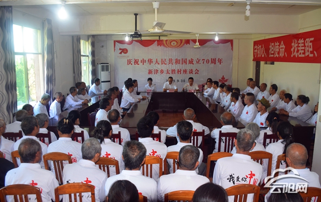 在太勝村會場,一場別開生面的座談會在這里舉行。新津鄉(xiāng)黨委政府、各村村支部、黨員代表、駐村工作隊(duì)、返鄉(xiāng)代表、群眾代表齊聚一堂,為新中國成立70周年送上了最真摯的祝福。在會上,代表們爭先發(fā)言,對當(dāng)?shù)氐慕?jīng)濟(jì)文化發(fā)展進(jìn)行了深入的討論,為新津鄉(xiāng)的持續(xù)發(fā)展提出中肯的建議。最后,與會人員進(jìn)行了“不忘初心,牢記使命”主題教育,集中學(xué)習(xí)習(xí)近平總書記視察重慶重要講話精神,全面把握“守初心、擔(dān)使命、找差距、抓落實(shí)”的總要求,筑牢信仰之基,補(bǔ)足精神之鈣,合力協(xié)作推進(jìn)新津鄉(xiāng)各項(xiàng)工作穩(wěn)定開展。