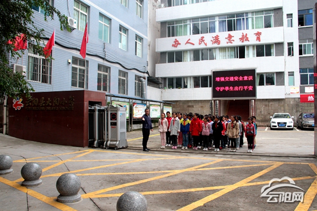云陽網(wǎng)訊(記者 李充 通訊員 余定平)10月9日,大陽小學(xué)的負(fù)責(zé)人正在給30余名小學(xué)生耐心講解道路交通標(biāo)識(shí)相關(guān)知識(shí)。