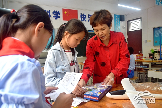 由于熱愛科技,于立新在盤石小學的科技輔導員崗位上一干就是9年,盡管今年已經(jīng)52歲,但是一說起科技,她仍舊充滿熱情和干勁。走進盤石小學的科學教室,記者被各種模型的創(chuàng)意設計吸引了眼球。于立新說,這些都是孩子們發(fā)揮想象力,自己動手完成的。