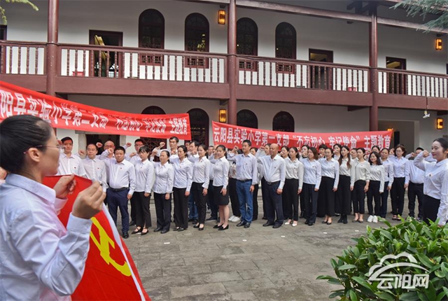 上午9時10分,大家懷著無比崇敬的心情在烈士銅像前進行了莊嚴宣誓,重溫入黨誓詞,為烈士敬獻了鮮花。了解到彭詠梧同志從小立志讀書,返鄉(xiāng)從戎投身革命的感人事跡后,實驗小學的黨員們?yōu)楦锩攘业挠⒂率论E所折服,感受到今天的幸福生活來之不易。他們表示,云陽的一批革命志士為了解放事業(yè)拋頭顱灑熱血,先烈們勇于獻身的精神永遠值得大家學習和銘記。