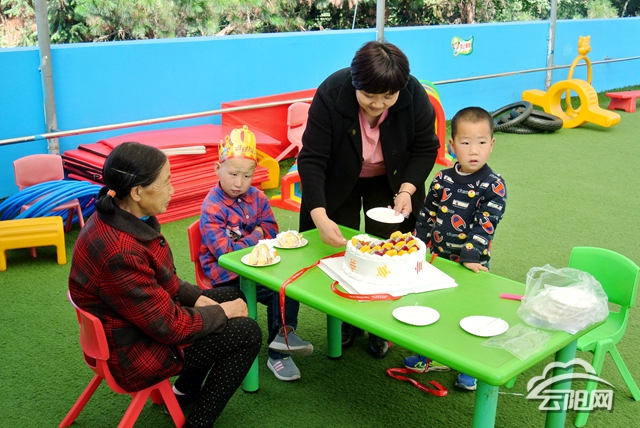 據(jù)了解,黃玉林是屬于先天性的智力發(fā)育遲緩,2017年9月開始,歧陽(yáng)小學(xué)就安排吳云老師每周送教上門,平時(shí)逢年過節(jié)也會(huì)給孩子帶上一些小禮品,得知今天是孩子生日,吳云老師親自為孩子買了蛋糕,特意邀請(qǐng)黃玉林和奶奶到學(xué)校慶祝生日。