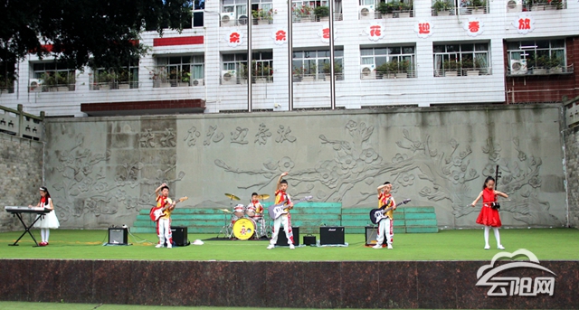 在現(xiàn)場(chǎng),孩子們將二胡、電鋼琴、吉它、架子鼓、快板等搬上舞臺(tái),以樂器演奏、朗誦、情景劇等形式,歌頌我們擁有的這個(gè)和平、幸福的新時(shí)代,深刻詮釋新時(shí)代好少年的豐富內(nèi)涵——做新時(shí)代好少年,應(yīng)該做到文明有禮、自強(qiáng)自立、誠(chéng)實(shí)守信、盡責(zé)奉獻(xiàn)、尊老愛親、助人為樂。表達(dá)了少年兒童對(duì)美好生活的向往,立志為明天努力學(xué)習(xí)的遠(yuǎn)大理想。