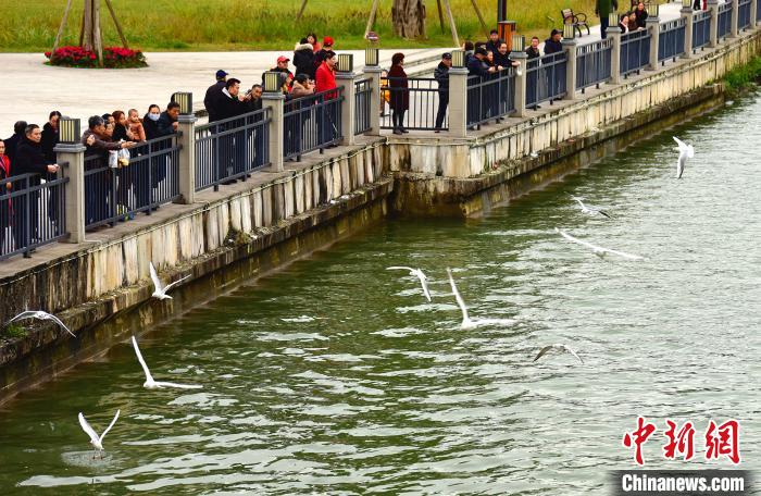 圖為紅嘴海鷗遷徙至合川三江引市民游客駐足?!×_永皓 攝