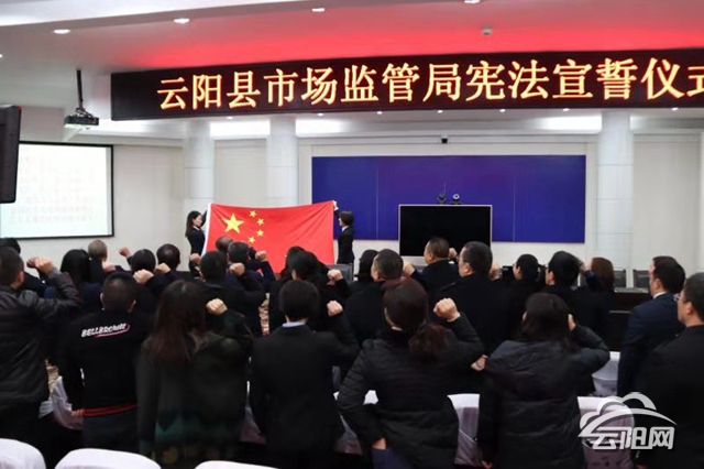 根據(jù)《中華人民共和國(guó)憲法》和《重慶市憲法宣誓實(shí)施辦法》,縣市場(chǎng)監(jiān)管局全體中層干部依法進(jìn)行憲法宣誓。