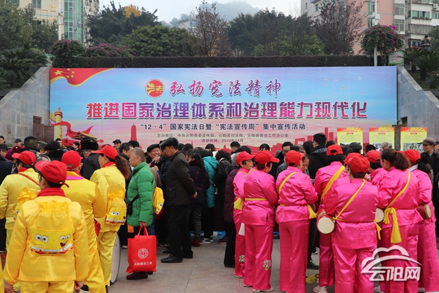 當(dāng)天,縣委政法委、公安局、檢察院、法院、司法局、稅務(wù)局、人力社保局等30多個(gè)部門(mén)在群益廣場(chǎng)搭建了宣傳臺(tái),圍繞“弘揚(yáng)憲法精神,推進(jìn)國(guó)家治理體系和治理能力現(xiàn)代化”主題,結(jié)合各部門(mén)實(shí)際開(kāi)展宣傳。