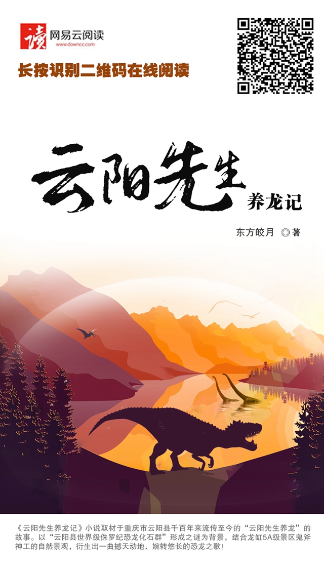 《云陽先生養(yǎng)龍記》小說取材于重慶市云陽縣千百年來流傳至今的“云陽先生養(yǎng)龍”的故事。以“云陽縣世界級侏羅紀(jì)恐龍化石群”形成之謎為背景,結(jié)合龍缸5A級景區(qū)鬼斧神工的自然景觀,衍生出一曲撼天動地、婉轉(zhuǎn)悠長的恐龍之歌!