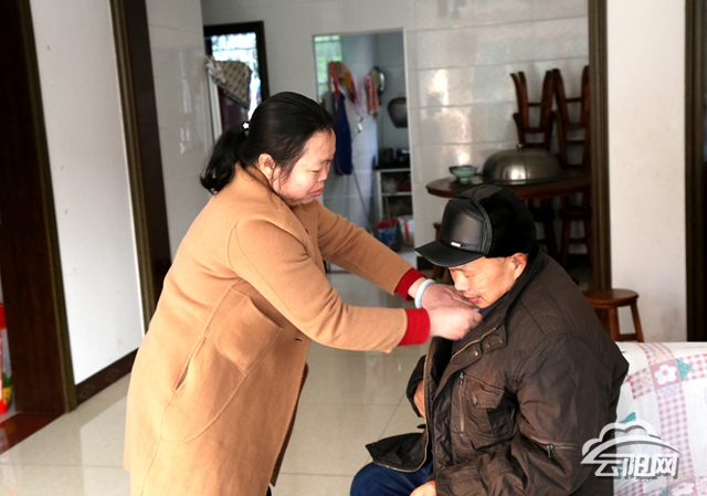 “這么冷的天,怎么不把衣服扣上。”說(shuō)罷吳志明便蹲下身幫老人扣上了衣服。12月5日,記者來(lái)到桔苑小區(qū)吳志明鄰居熊道兵家中,看到的就是這樣一幅畫(huà)面。