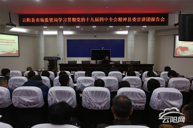 云陽(yáng)網(wǎng)訊(記者 徐磊磊)12月10日,縣市場(chǎng)監(jiān)管局召開學(xué)習(xí)貫徹黨的十九屆四中全會(huì)精神縣委宣講團(tuán)報(bào)告會(huì)。