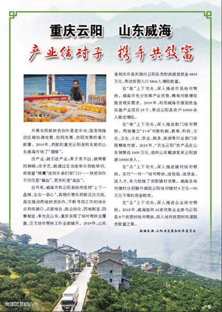 開(kāi)展東西部扶貧協(xié)作是黨中央、國(guó)務(wù)院推動(dòng)區(qū)域協(xié)調(diào)發(fā)展、協(xié)同發(fā)展、共同發(fā)展的重大部署。2010年,西部的重慶云陽(yáng)縣和東部的山東威海市結(jié)了“姻緣”。