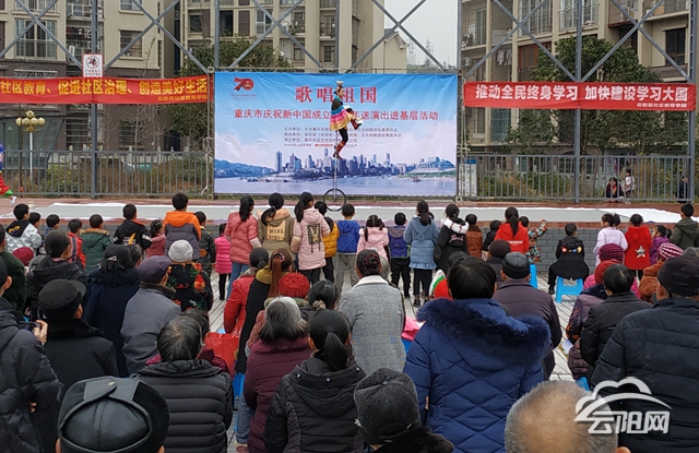 云陽網(wǎng)訊(記者 何競嘉)近日,由市委宣傳部、市文化和旅游發(fā)展委員會主辦的“歌唱祖國——重慶市慶祝新中國成立70周年送演出進基層活動”走進青龍街道亮水坪社區(qū),將免費文化大餐送到了群眾家門口。