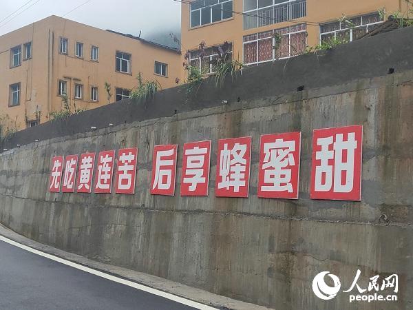 華溪村的標(biāo)語:先吃黃連苦 后享蜂蜜甜。 龍泓攝