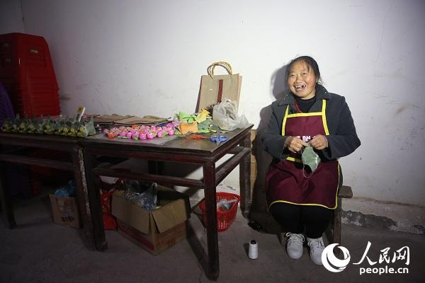 在陳朋揮灑汗水的同時(shí),譚明蘭也沒有閑著。今年7月,重慶市婦聯(lián)在華溪村設(shè)立巾幗扶貧車間家庭工坊,家庭工坊結(jié)合當(dāng)?shù)赝良绎L(fēng)俗文化元素,設(shè)計(jì)出布老虎、手提袋等特色產(chǎn)品,經(jīng)過一個(gè)月的培訓(xùn),譚明蘭掌握了制作手藝,如今每個(gè)月能收入1000元左右。不僅如此,譚明蘭還參與了村內(nèi)的公益性崗位,每年可收入4800元。