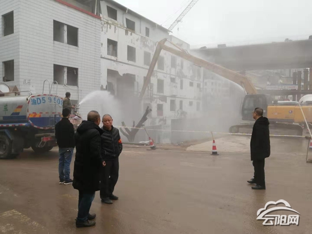 據(jù)拆遷工作人員介紹,為減輕拆遷揚(yáng)塵對(duì)云開(kāi)路過(guò)往車(chē)輛和群眾的影響,施工方特意安排了一輛灑水車(chē)灑水撲塵。