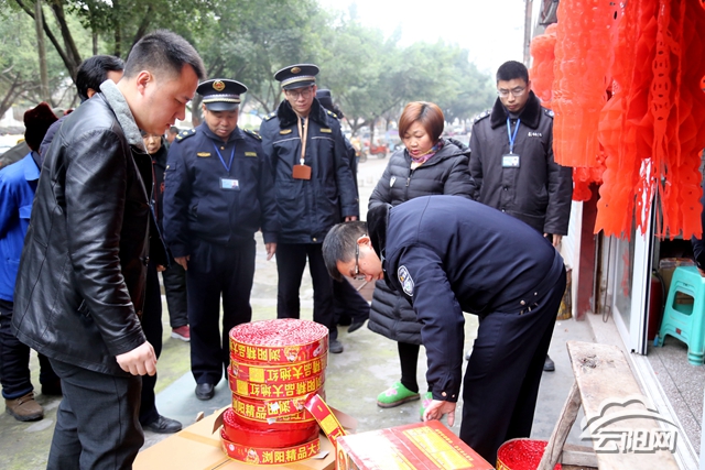 檢查組先后來到青龍街道、雙江街道、盤龍街道、人和街道等地,對(duì)沿街喪葬一條龍及祭品店進(jìn)行實(shí)地檢查,對(duì)非法儲(chǔ)存、銷售等違法行為予以打擊,并向城區(qū)及周邊市民宣傳煙花爆竹禁放規(guī)定。兩天內(nèi),檢查組共檢查了喪葬一條龍及祭品店43家,查獲非法經(jīng)營煙花爆竹46件,其中煙花10件,爆竹36件,有力震懾了禁放區(qū)域內(nèi)煙花爆竹違法銷售、儲(chǔ)存、燃放等行為。