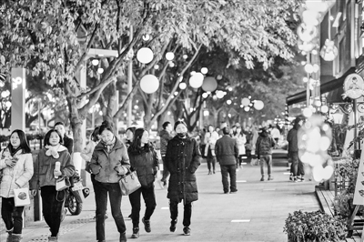 夜晚來臨,重慶“大九街”上人頭攢動,一派熱鬧景象。曹檢攝/光明圖片