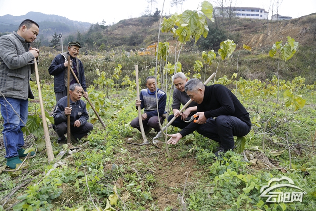 暖陽照耀,微風(fēng)習(xí)習(xí)。連日來,棲霞鎮(zhèn)吉平村第一書記葉正泉,趁著好天氣,帶著一把剪刀,扛著一把鋤頭,和村民們一道來到田間,對蠶?;刂械膸装倏蒙溥M行冬管,除草、施肥、修剪枝條……葉正泉手把手指導(dǎo)村民們管護,還半開玩笑說著:“鄉(xiāng)親們,大家鉚足勁干,管護好這片桑樹,咱們得為春節(jié)后的第一季養(yǎng)蠶備足“糧食”。
