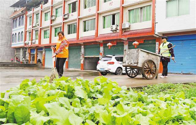 怒放的四季海棠鋪滿了房前屋后、彩色的輪胎點(diǎn)綴著圍墻景觀、密集的竹籬笆擁簇著入戶道路……每天上午,巴南區(qū)二圣鎮(zhèn)集體村院落長(zhǎng)潘孝燕都要對(duì)綠樹(shù)紅花環(huán)繞的20戶村民院落進(jìn)行衛(wèi)生巡查。