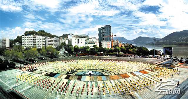 云陽兩江廣場(chǎng)市民健步操表演 攝/解維民