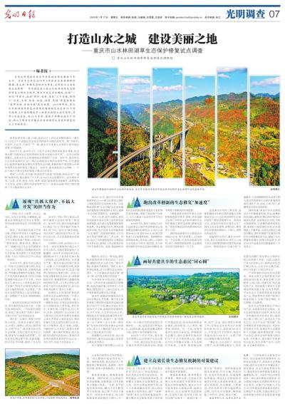 秉承“山為骨、水為脈、林田湖草為肌體”的思路,堅持全市“一盤棋”統(tǒng)籌布局,重慶推進(jìn)了7大類、近300個生態(tài)修復(fù)項目。試點兩年多來,“山青、水秀、林美、田良、湖凈、草綠”修復(fù)畫卷徐徐展開,直接惠及千萬市民,還吸引國內(nèi)外游客爭相“打卡”,給重慶這座“網(wǎng)紅”城市增添了不少靚麗的生態(tài)名片。