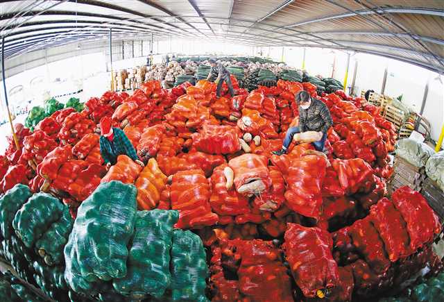 1月28日下午4點(diǎn)半左右,重慶商社集團(tuán)萬(wàn)虎物流園區(qū),多輛載滿(mǎn)新鮮蔬菜的大貨車(chē)剛剛到達(dá),工作人員隨即忙活起來(lái),陸續(xù)把蔬菜從貨車(chē)上卸下來(lái),用板車(chē)等工具運(yùn)送到出貨口。整個(gè)場(chǎng)面忙碌而有序。