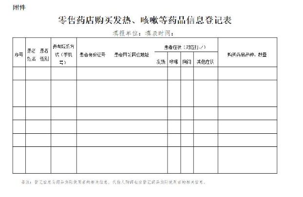 附件:零售藥店購買發(fā)熱、咳嗽等藥品信息登記表