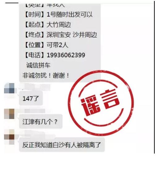 謠言:江津白沙鎮(zhèn)有人感染“新冠肺炎”被隔離