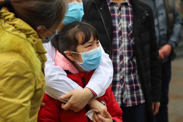 大足區(qū)人民醫(yī)院重癥醫(yī)學(xué)科況剛醫(yī)生,妻子也是同醫(yī)院產(chǎn)科醫(yī)生,況剛此前在華西醫(yī)院重癥醫(yī)學(xué)科進(jìn)修,昨天下午接到醫(yī)院通知赴鄂援助,立刻趕回大足。昨晚抵家后,9歲女兒已熟睡,今天一大早就去醫(yī)院做準(zhǔn)備動(dòng)員工作,沒來得及和孩子告別。得知爸爸要去湖北,女兒含淚抱住爸爸不肯放手。 受訪醫(yī)院供圖 華龍網(wǎng)發(fā)