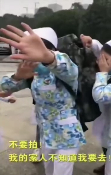 “不要拍!我的家人不知道我要去!”重慶市江津區(qū)中醫(yī)院廣場前,看到鏡頭,兩名即將出征的護(hù)士妹妹急忙捂住了臉,不想讓家人擔(dān)心。 受訪醫(yī)院供圖 華龍網(wǎng)發(fā)