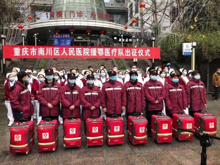 重慶市南川區(qū)人民醫(yī)院援鄂醫(yī)療隊(duì)出征儀式。 受訪醫(yī)院供圖 華龍網(wǎng)發(fā)