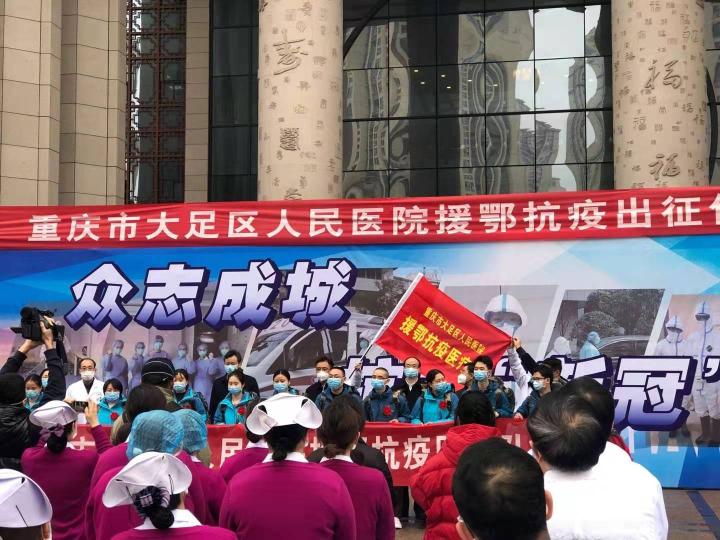 重慶市大足區(qū)人民醫(yī)院援鄂醫(yī)療隊(duì)出征。 受訪醫(yī)院供圖 華龍網(wǎng)發(fā)