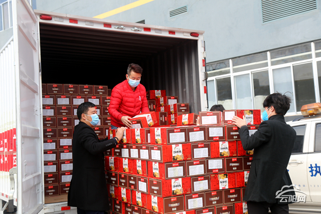 云陽(yáng)網(wǎng)訊(記者 鄭紅均 劉太興)病毒無(wú)情,云商有愛。2月4日,廣東省重慶云陽(yáng)商會(huì)第三批抗疫捐贈(zèng)物資抵達(dá)云陽(yáng),共1300件無(wú)糖沙琪瑪,2萬(wàn)只醫(yī)用口罩。