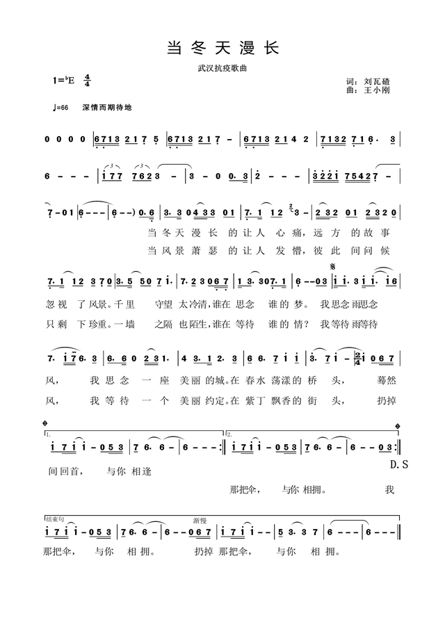 “當(dāng)冬天漫長(zhǎng)得讓人心痛,遠(yuǎn)方的故事忽視了風(fēng)景……我思念雨思念風(fēng),我思念一座美麗的城,在春水蕩漾的橋頭,驀然回首,與你相逢……”歌詞所描述的不單單是一個(gè)人的思念、一個(gè)人的等待,也是萬(wàn)眾的思念、萬(wàn)眾的等待,曲調(diào)深沉、壯闊,扣人心弦,激勵(lì)人們眾志成城,攜手打贏這場(chǎng)疫情防控阻擊戰(zhàn)。