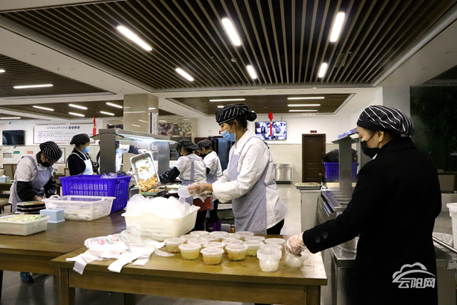 云陽網(wǎng)訊(記者 趙曉龍 劉浮生)“縣委辦14份、物業(yè)公司7份……”2月4日,記者走進(jìn)縣機(jī)關(guān)職工食堂看到,工作人員全副武裝正在采用流水線作業(yè),為防控一線值班人員準(zhǔn)備午餐,保障用餐安全。