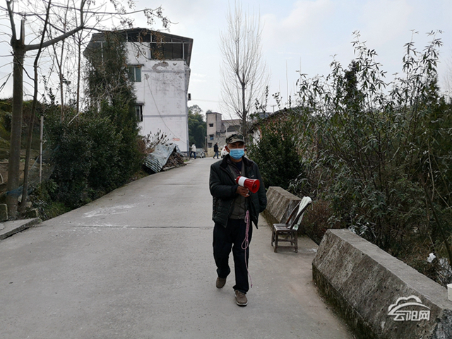 云陽(yáng)網(wǎng)訊(記者 王彬彬 )“不聚會(huì),不串門,聚會(huì)串門是害人;人多莫去湊熱鬧,出門記得戴口罩;發(fā)熱癥狀及早看,確保自己身體好……”自防控新型冠狀病毒疫情“開(kāi)戰(zhàn)以來(lái)”,在云陽(yáng)縣養(yǎng)鹿鎮(zhèn)大同村,有這樣一名老年人志愿者,他每天用獨(dú)臂舉著一臺(tái)自購(gòu)擴(kuò)音器,擴(kuò)音器反復(fù)播放著關(guān)于新型冠狀病毒感染肺炎疫情防控相關(guān)的宣傳口號(hào)。