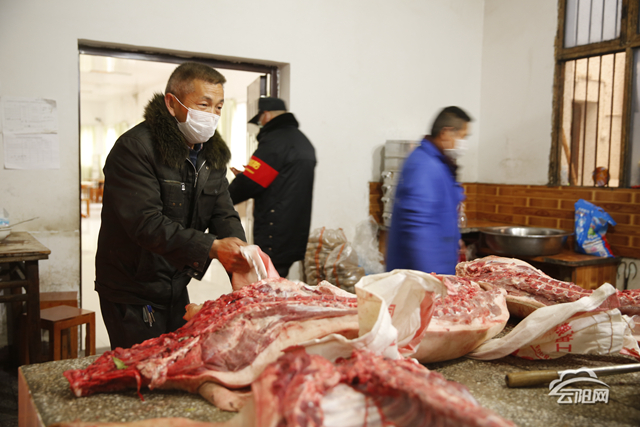 鄒興平和他的同伴將宰殺好的兩頭肥豬抬進食堂放好后立即轉(zhuǎn)身離開,他并不想讓別人知道他的善舉,街道職工也只拍到了他匆忙抬肉的一張照片。走出大門的時候,他還反復(fù)強調(diào),不要聲張,他只是在盡自己的一份力量,他說街道的干部職工從大年三十到現(xiàn)在一直都沒休息,大家為了群眾的生命安全,每天奔走在抗疫一線,作為老百姓的他很是感動……