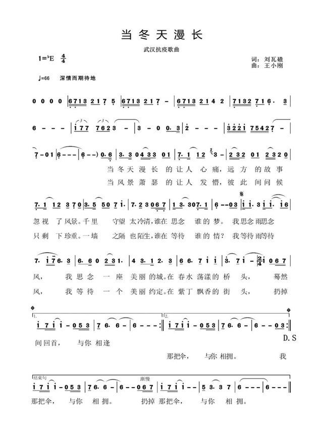 “當(dāng)冬天漫長的讓人心痛,遠(yuǎn)方的故事忽視了風(fēng)景……我思念雨思念風(fēng),我思念一座美麗的城,在春水蕩漾的橋頭,驀然回首,與你相逢……”歌詞所繪不單單是一個人的思念、一個人的等待,也是萬眾的思念、萬眾的等待,曲調(diào)深沉、壯闊,扣人心弦,激勵人們眾志成城,攜手打贏這場不見煙的新冠“戰(zhàn)疫”。