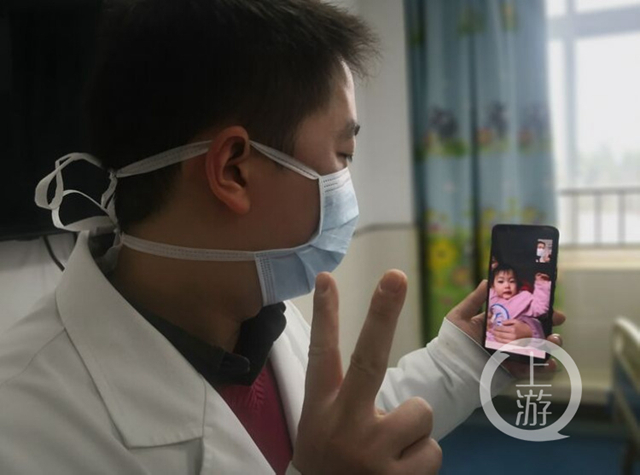 2月8日10點,黔江中心醫(yī)院新型冠狀病毒感染的肺炎集中救治病區(qū),32歲的醫(yī)生田小龍撥通了妻子何芙蓉的微信視頻。