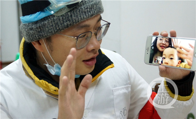 吃著社區(qū)居民送來的湯圓,看著屏幕里的妻兒,這是鄧飛十幾天來最放松的一刻。
