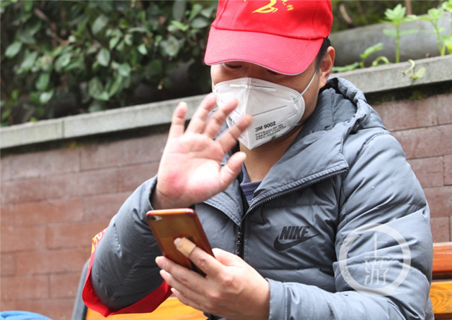 2月8日上午11點(diǎn),渝北區(qū)禮嘉街道白馬社區(qū)白馬新村,李武巡查完他負(fù)責(zé)的片區(qū)住戶,終于得閑休息一下,他坐在樓下的長(zhǎng)椅上,和妻子趙余撥通了視頻電話。