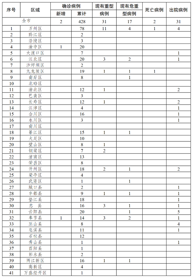 新增確診病例中,渝中區(qū)1例、奉節(jié)縣1例。