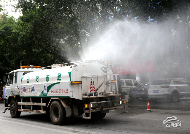 除了灑水車(chē)噴灑消毒,環(huán)衛(wèi)所還組織工人對(duì)人行道進(jìn)行地毯式的人工消毒。